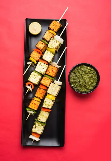 Grilled Paneer Tikka marinated with Indian spices, offering a rich, smoky taste. The ideal choice for vegetarians craving something full of flavour.